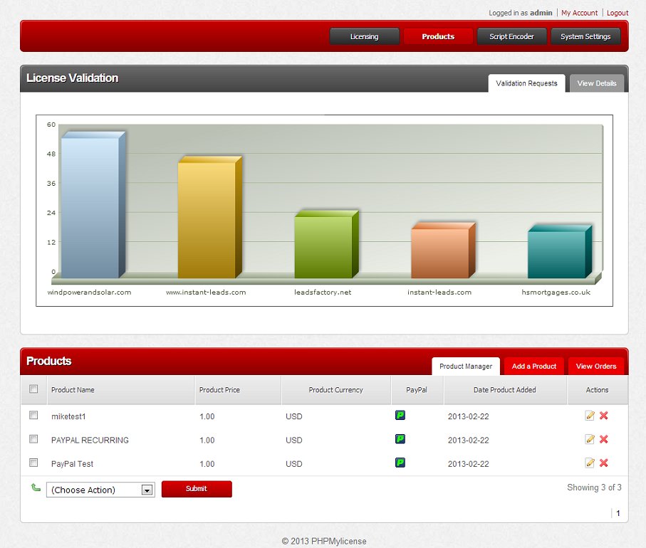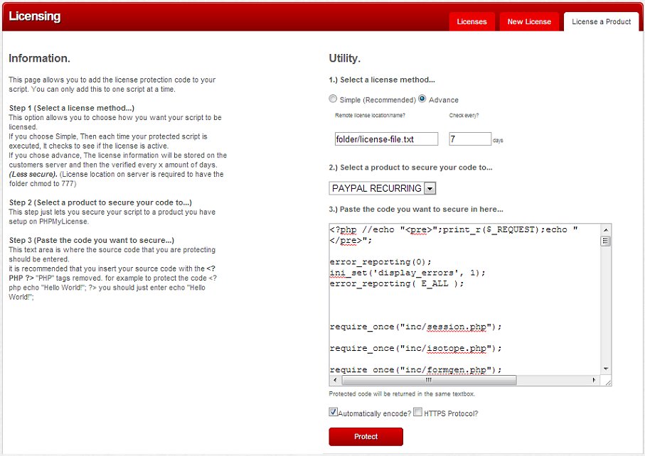 The look and feel of PHPMyLicense says it all. This is a php licensing manager that has absolutely everything you need to encode, license and protect your software. Licensing your products is so easy a child could use it, but it will be so difficult to hack your products that pirates probably wont even bother trying!